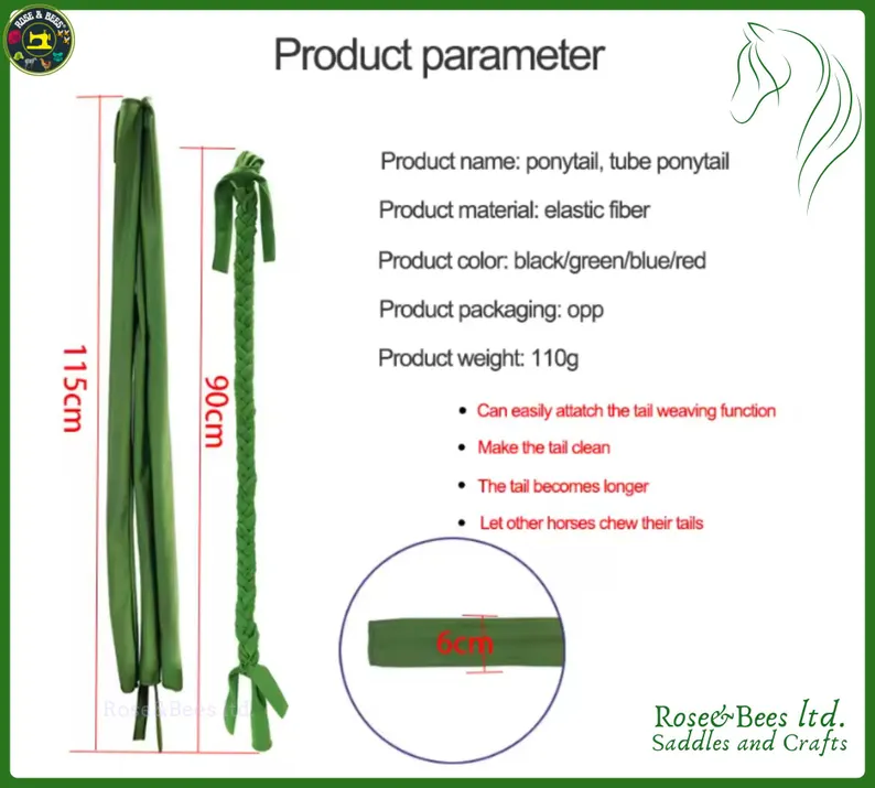 Handcrafted with care by Rose & Bees Ltd. 💕, this premium Horse Tail Braid Protector is designed for durability, comfort, and flexibility. Made from high-performance stretchable fabric, it shields your horse’s tail from dirt, tangles, and pesky mosquitoes 🦟 while adding a touch of style. Whether for daily grooming or special events, this tail protector ensures your horse looks its best—effortlessly! 🐎✨